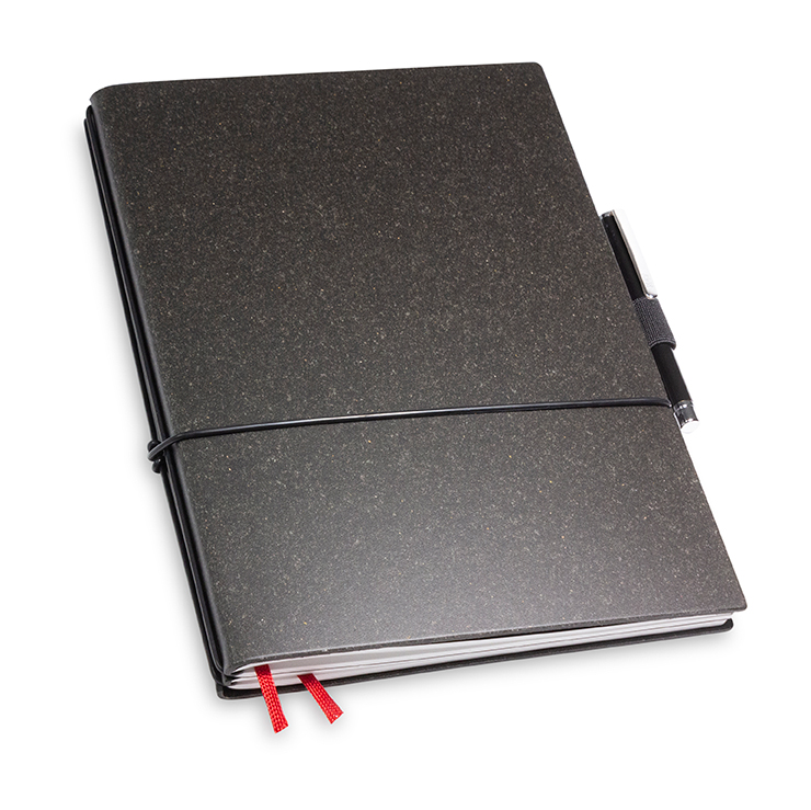 - Bestückung: 1 x blanko Einlage, 1 x 2.5 mm karierte Einlage, 1 x Doppeltasche, 1 x Pen Loop, 1 x Doppelbuchband, 1 x Mini-Stift