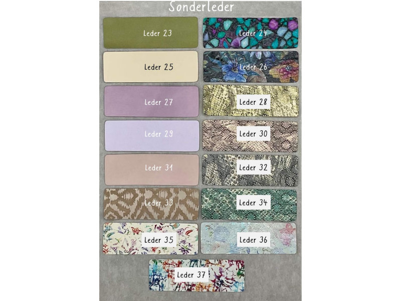 Choisissez parmi la diversité des cuirs ce qui vous plaît. Cliquez sur le bouton « Ajouter au panier » et indiquez le numéro de votre cuir (voir photo) dans le champ de message lors du paiement.
